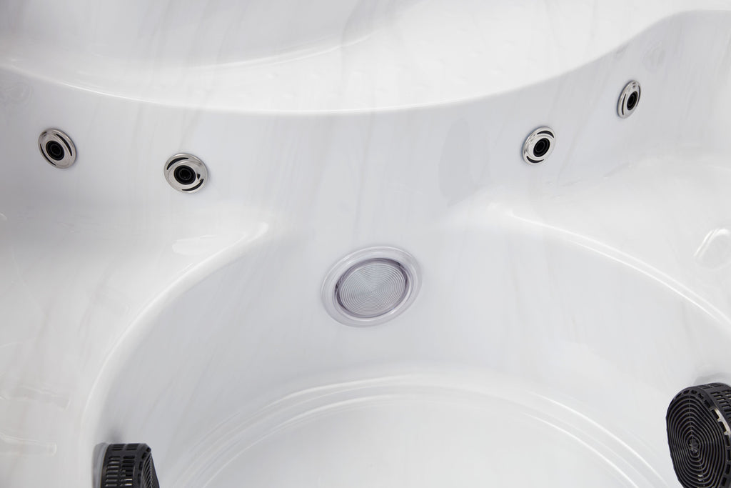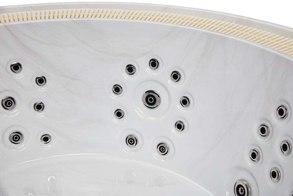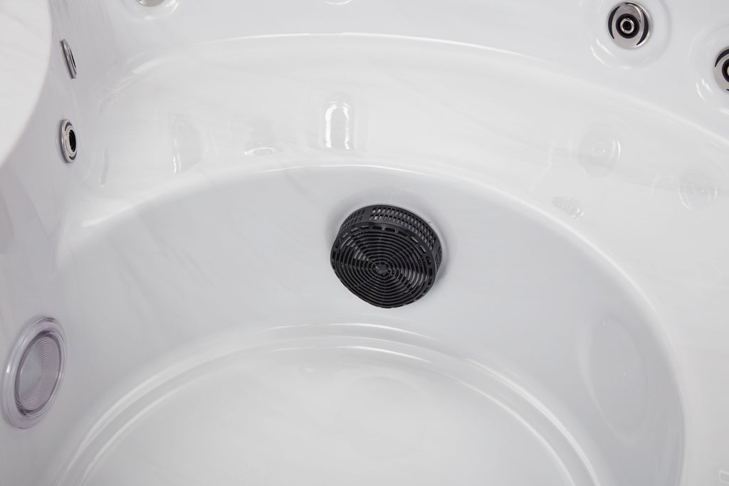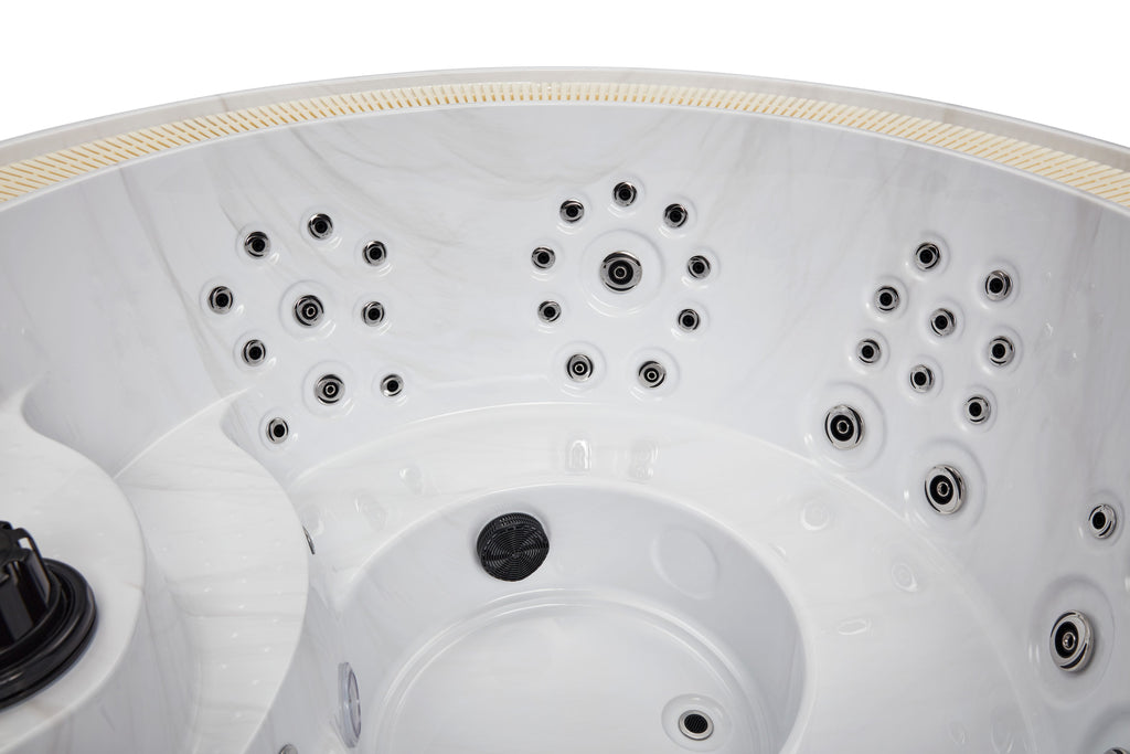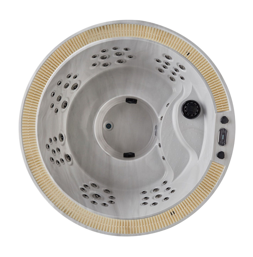 The Oscar 6-person round home spa with cloud gray interior features spacious and comfortable ergonomic seating allowing you to relax and enjoy the spa with friends and family. Designed with gatherings in mind, the Oscar has a total of 64 adjustable massage jets perfect for relaxing and de-stressing the day away. The multi-speed 3 HP motor provides ample power for the adjustable stainless steel massage therapy jets. Includes premium Bluetooth sound system. Multi-layer PU insulation improves efficiency and reduces energy costs in colder climates