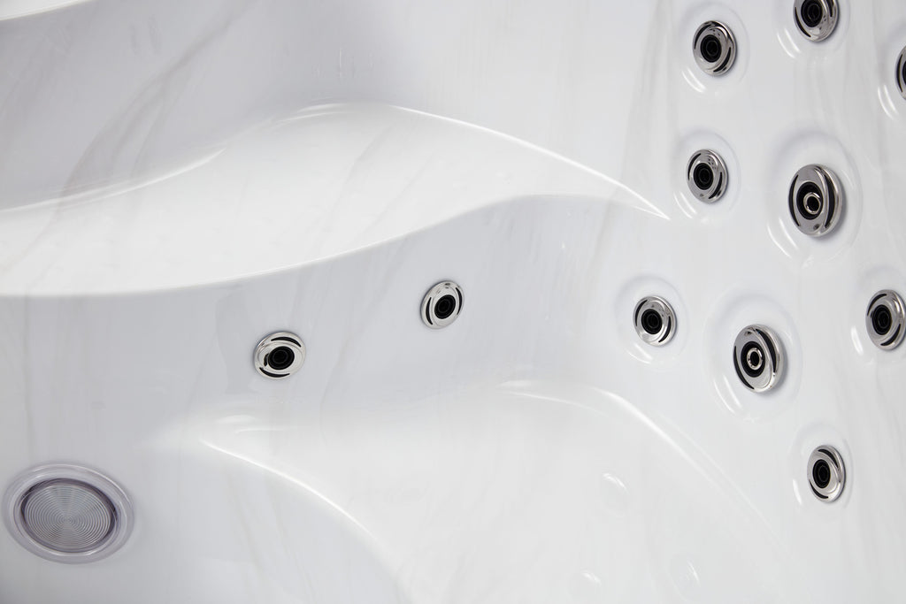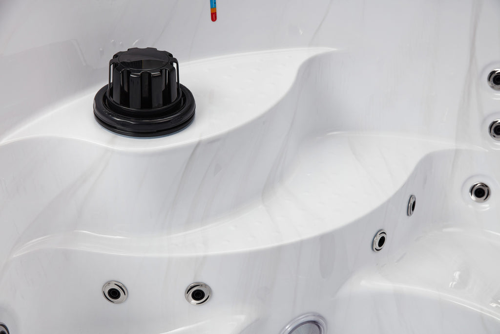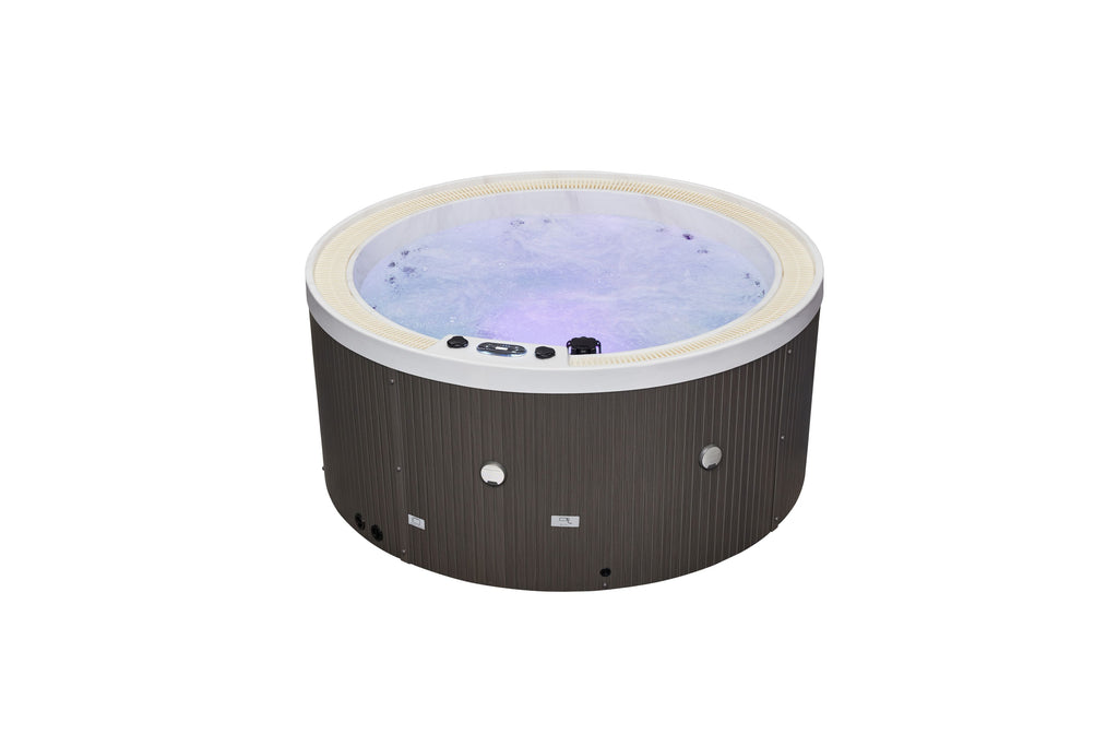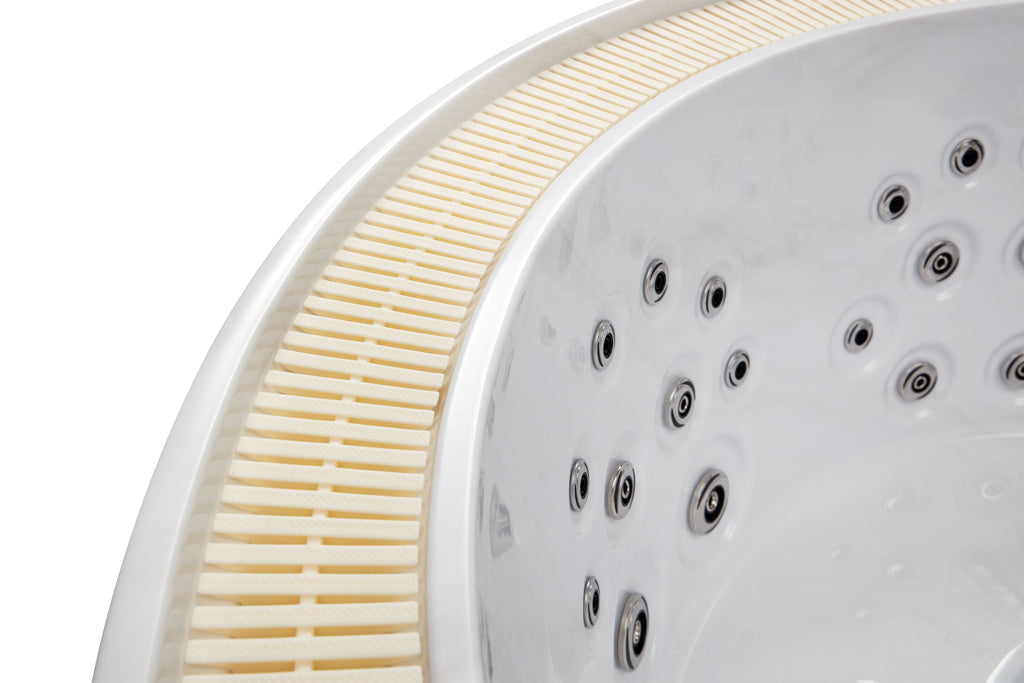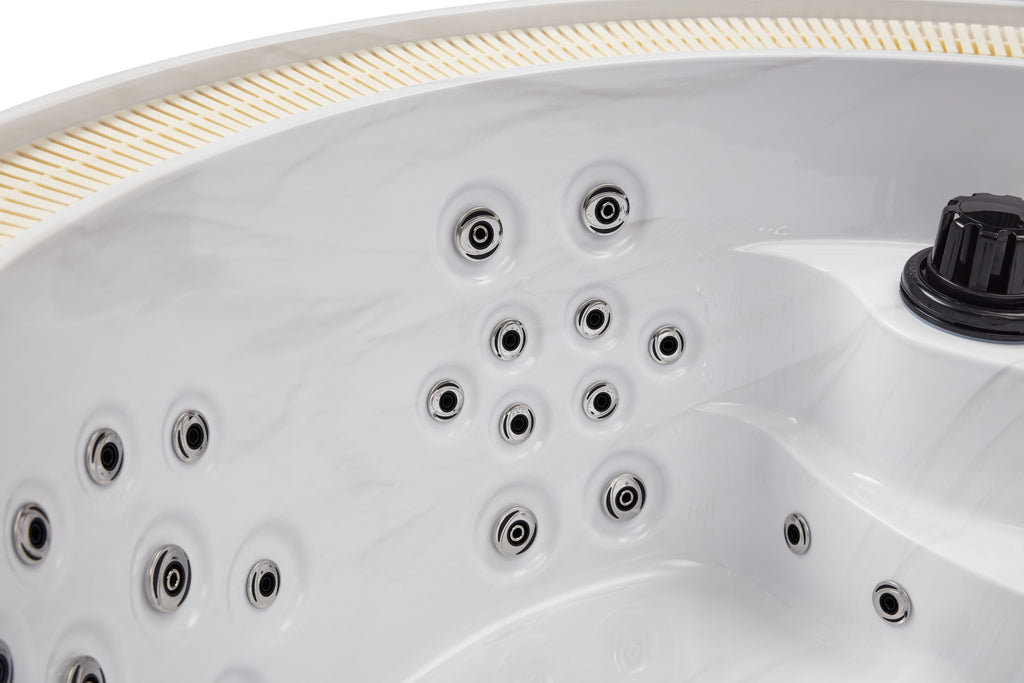 The Oscar 6-person round home spa with cloud gray interior features spacious and comfortable ergonomic seating allowing you to relax and enjoy the spa with friends and family. Designed with gatherings in mind, the Oscar has a total of 64 adjustable massage jets perfect for relaxing and de-stressing the day away. The multi-speed 3 HP motor provides ample power for the adjustable stainless steel massage therapy jets. Includes premium Bluetooth sound system. Multi-layer PU insulation improves efficiency and reduces energy costs in colder climates